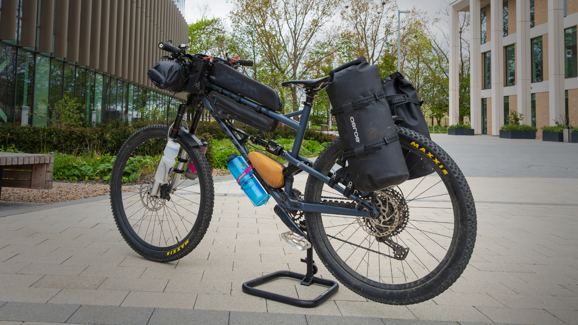 Getting this one right has been a bit of a head-scratcher. My first shakedown ride across the Ridgeway in South England really helped to refine the setup. Originally, I had two 5-litres bags mounted to the fork and a single 12-litre dry bag on the rear. I wanted to take full advantage of having a full-suspension bike, so I made no apologies for sending it down rough bridleways and single track.
